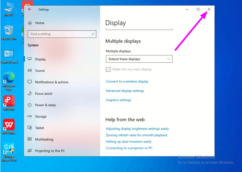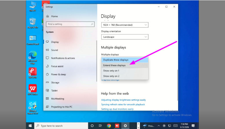 - Scroll kebawah, pilih Multiple Displays : Extend These Display