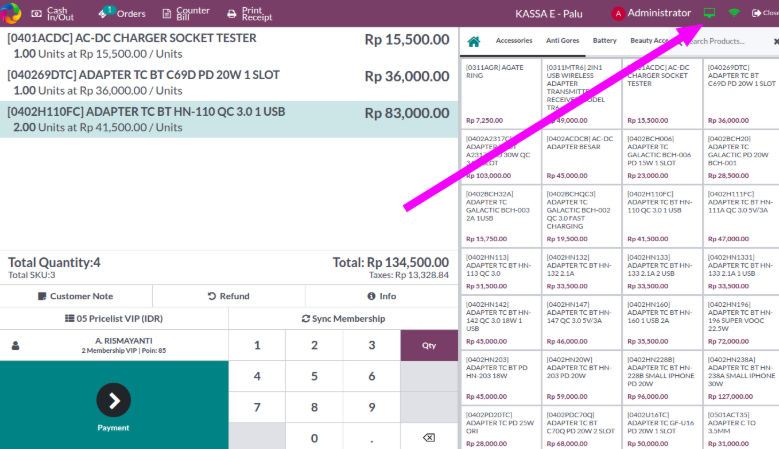 - Balik lagi ke POS lalu klik icon Monitor dikanan atas