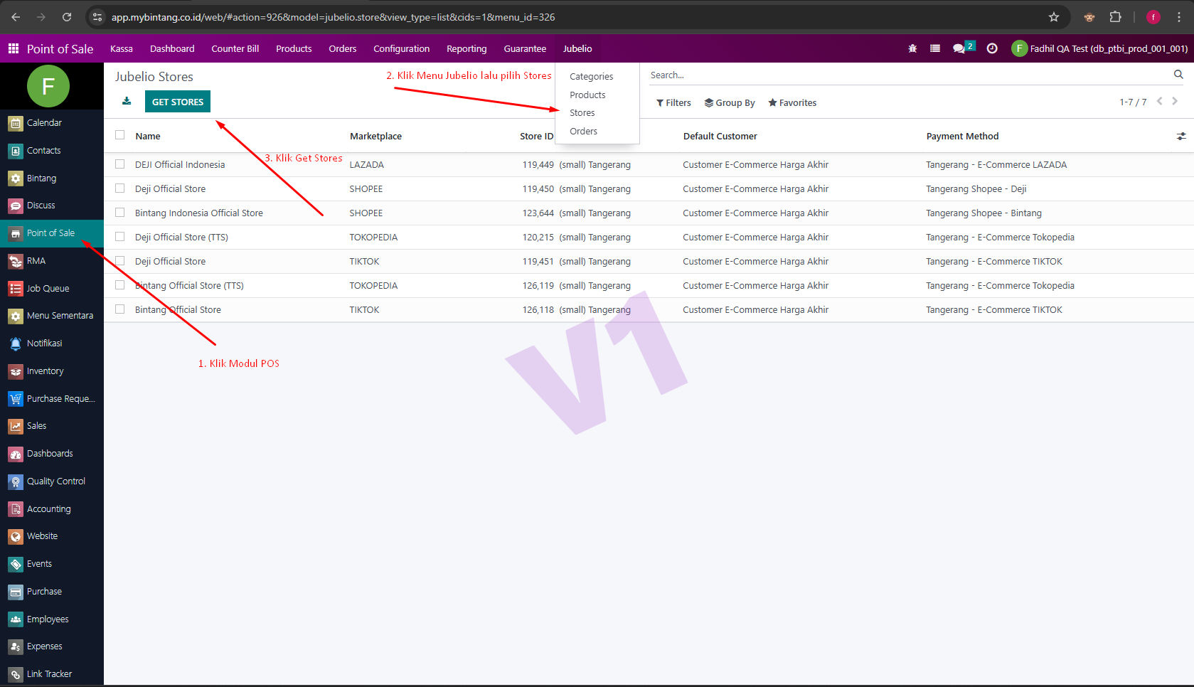 - Klik Get Stores untuk update data toko yang ada di jubelio