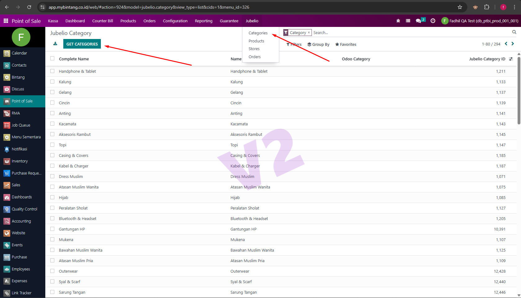 Untuk ambil category yang ada di Jubelio dan sync ke Odoo, Category ini terpakai kalau misal mau create product baru di Odoo kemudian sync ke Jubelio.