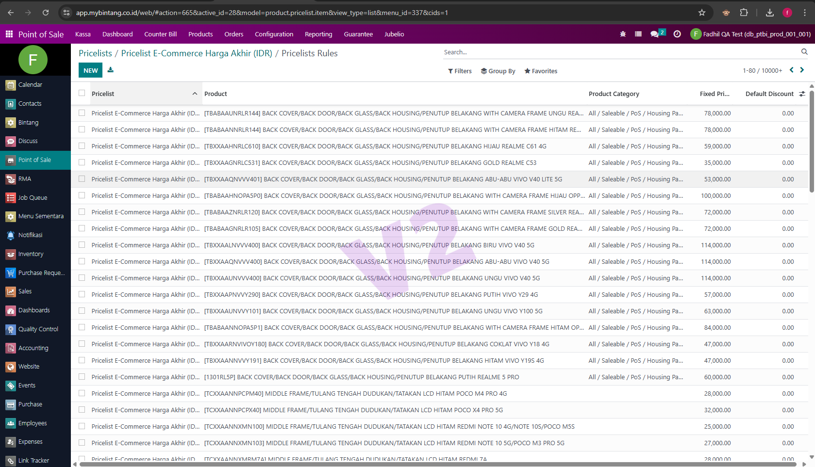 - Akan menampilkan item product, jika terdapat perubahaan harga pada pricelist tersebut, otomatis harga dijubelio akan terupdate/berubah