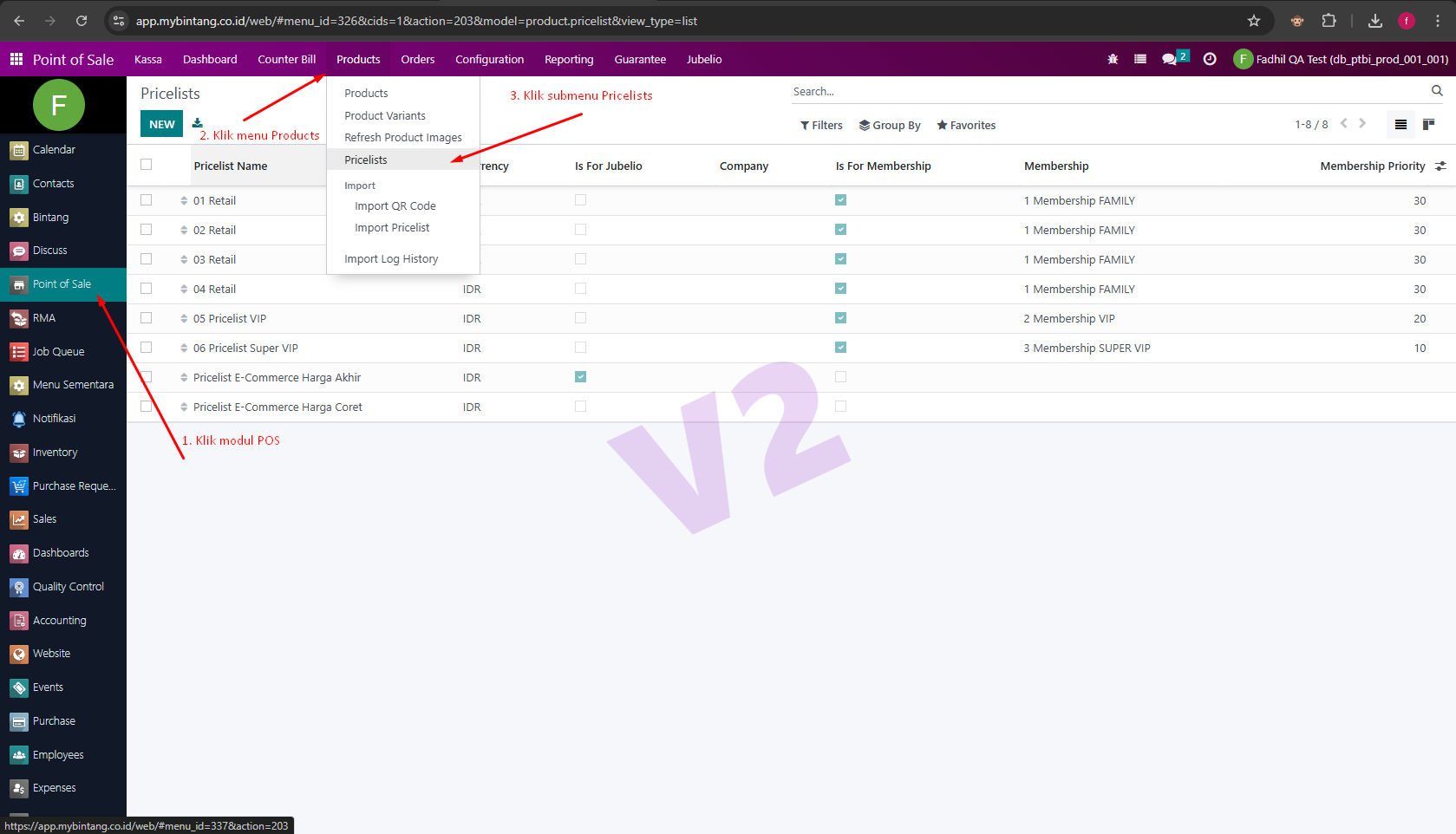 - Pilih menu Product, Lalu pilih submenu pricelists