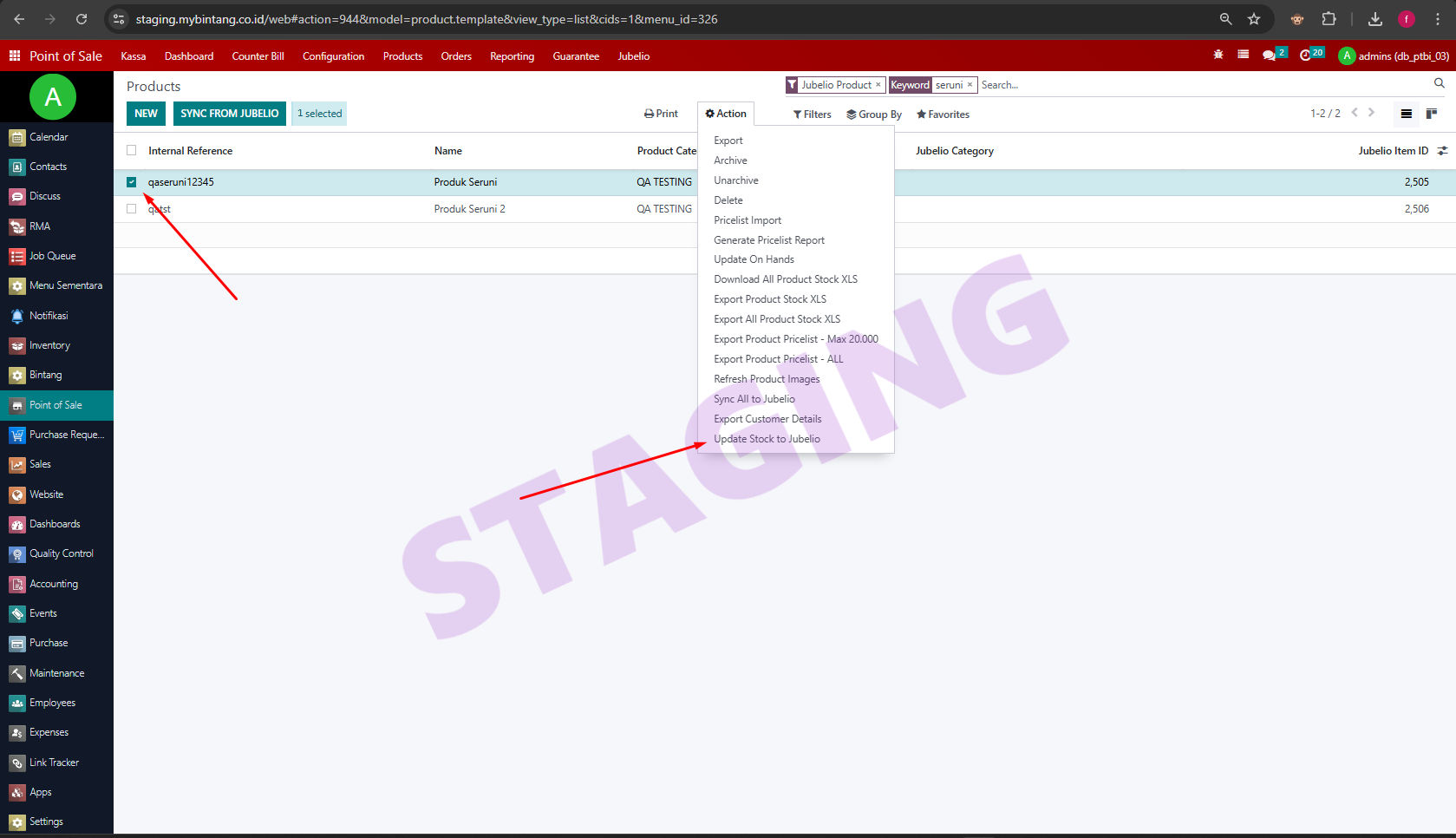 - Pilih Product yang ingin di update stocknya ke Jubelio
